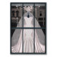 Perfekt för alla brudar med flickaktig charm och vintage stil. En vacker, knappt rosa, sjöjungfru-klänning i ett chic vintage-fönster, interiören på kortet visar butikens inredning, där klänningen och slöjan har tagits bort från dockan och förpackats i stora rosa lådor med rosa band. Perfekt för brudar, gratulationer till förlovning eller bröllopsrelaterade händelser.