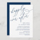 Vacker Modern Minimalistisk Design, i Marinblå Tema, Bröllopsannonsering, Inbjudningskort (Lyckliga för evigt). Detta är perfekt för din bröllopsfest och efterfirande. Lägg till din efterbröllops brunch / middag detaljer. #TeeshaDerrick
