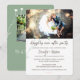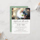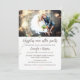 Rustik och elegant bröllopsfestinbjudan. Lägg till ditt favoritbröllopsfoto längst upp, handskriven, modern typografi. En vild botanisk. Ytterligare foto på baksidan av kortet.