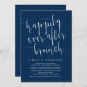 Detta är ett redigerbart modernt marinblått manus, vigsel elopement inbjudningskort (Lyckliga för evigt-brunch). Ett perfekt kort för att inbjuda din älskade familj och gäster till tillkännagivandet av din vigsel, firande av mottagningsparty. Lägg till dina födelsedagsdetaljer i matchande teckensnitt / bokstäver.