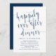 Det här är ett redigerbart modernt marinblått manus, bröllops inbjudningskort (lyckligt för evigt middag). Ett perfekt kort för att inbjuda din älskade familj och gäster till tillkännagivandet av er vigsel, mottagning och fest. Lägg till era fester i matchande typsnitt / bokstäver. #TeeshaDerrick