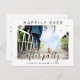 Modern elopement eller mindre bröllopsannonseringskort för att informera familj och vänner om att era bröllopsplaner har ändrats, och att ni rymt eller minskat antalet gäster på er bröllopsfest till en liten intim grupp, och för att inbjuda dem till en bröllopsmottagning eller celebrerande fest. Framsidan visar ert foto och "Happily Ever After Party" i en blandning av enkel typografi och ett trendigt skrivsätt, samt era förnamn och bröllopsdatum. På baksidan kan ni anpassa ert meddelande och inbjudan i detalj och era namn i ett signaturliknande skrivsätt.