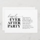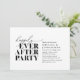 Meddela och dela upp er för evigt efter med stil med vår moderna svart-vit tema design (Happily ever after party) bröllopsinbjudan för vigselceremoni och fest. Det är idealiskt för par som har beslutat att fira sin stora dag. Med sin sofistikerade men ändå lekfulla design kommer denna inbjudan säkert att sätta tonen för en oförglömlig händelse. Inbjudningskortet har ett modernt och minimalistiskt manus-designtema som ger en touch av tidlös elegans till er fest. Designad av TeeshaDerrick