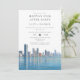 Denna eleganta lyckliga för evigt fest Miami skyline akvarell vigsel bröllopsinbjudan kan anpassas med din information i chic typografi. Designad av Thisisnotme