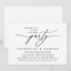 Detta är bröllopskortet för flyktiga par, med romantisk och modern minimalistisk skriptdesign (Lyckliga för evigt-fest), i svart-vit tema. Vänligen redigera med dina detaljer för bröllopsfesten.