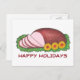 Vykortet har en originell tuschillustration av en utsökt skivad glaserad skinka, med LYCKLIGA HÖGTIDER i ett roligt teckensnitt. Perfekt för att skicka julhögtiderhälsningar!
