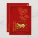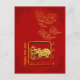 Gyllene pappersklipp av en oxe i en fyrkant + gyllene kinesiska lyckosamma moln (linjegrafik) + mörkröda kinesiska ramar i de fyra hörnen. Design på vykort med röd bakgrund och texter: 2021, Året för Oxen och Gott nytt år att anpassa om du vill (fram) och de lyckosamma molnen i övre vänstra hörnet (bak). Matchande gratulationskort, inbjudan, hantverksmaterial, festmaterial och mer... Perfekt för kinesiskt nyår för Oxen 2021 eller födelsedag (personer födda under Oxens år).