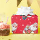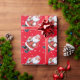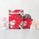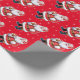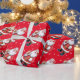 Lyckliga Santa som slår in papper på rött Presentpapper