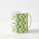 Få din irländska tur med denna vackra St. Patrick's Day-mugg! Ljust gröna shamrocks på en ljusbeige bakgrund är säkert en favorit. Personifiera med ditt namn i en oval märke.