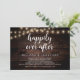 Vacker Lyckliga stunder för evigt festfirande, Bröllop Elopement kungörelse / Inbjudningskort, i Rustik lantlig trä, Slinglampor design. Detta är perfekt för din bröllopsfest och efterbröllopsfirande. Lägg till dina detaljer i matchande typsnitt / bokstäver.