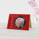 Söt och bedårande gris (3D-datorgrafik) som spargris med GLADT NYTT GRISÅR och år (anpassningsbart) på svart cirkel och genomskinlig bakgrund. Utformning på liggande gratulationskort med mörkröd bakgrund + texturerad gyllene bild inuti. Du kan enkelt ändra bakgrundsfärg, texter (typsnitt, färg, storlek och position) och storlek på designen genom att klicka på knappen Anpassa. Matchande gratulationskort, fotomagnet och mer... Perfekt för kinesiskt nyår för Gris 2019 eller födelsedag (personer födda under Grisens år). --- "Grisen (豬) är det tolfte och sista tecknet för de jordiska grenarna (亥). I den kontinuerliga sexagesimala cykeln motsvarar vart tolfte år Hai, och kallas vanligtvis "Grisens år" (豬年). Det finns fem typer av grisar, uppkallade efter de kinesiska elementen. I ordning är de: Metall, Vatten, Trä, Eld och Jord.