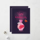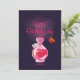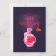 På framsidan av kortet finns en glasvas, inuti finns en rosa vätska som har öppnats med en etikett som visar att det är en kärleksdryck. Rosa rök kommer ut, hjärtan flyger upp och orden Lyckligt Alla Hjärtans Dag visas.