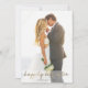 Detta eleganta bröllopsmeddelande fungerar också som en bröllopsinbjudan. Dubbelsidig inbjudan till bröllopsfesten med "Lyckligt för alltid" i falskt guldtryck och text som tillkännager det nygifta parets äktenskap och inbjuder gästerna till en avslappnad bröllopsfest. Anpassa med din egen foto.