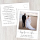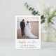 Elegant och chic bröllop eller mindre bröllopsannons och efterfest eller partya inbjudan vykort. Framsidan visar ert fotografi, "för alltid" skrivet i ett stilfullt skrivstil med svängar och era förnamn och bröllopsdatum och plats. På baksidan kan du anpassa din bröllopsannons i detalj, lägga till en efterfest eller inbjudan och underteckna era efternamn i en signerliknande stil.