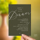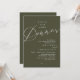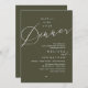 Meddela och dela din romantiska bröllopsdag lyckliga för alltid med stil med vår moderna olivgröna tema design "Lyckliga för alltid middag" bröllops elopement firande inbjudningskort. Det är idealiskt för par som har beslutat att fira sin bästa dag. Med sin sofistikerade men ändå lekfulla design kommer denna inbjudan säkert att sätta tonen för en oförglömlig händelse. Inbjudningskortet har ett modernt och minimalistiskt manus design tema, vilket ger en touch av tidlös elegans till din fest. Designad av TeeshaDerrick