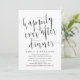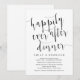 Detta är ett redigerbart modernt svart skript, bröllopsinbjudningskort (Happily Ever After Dinner). Ett perfekt kort för att inbjuda din älskade familj och gäster till tillkännagivandet av ert bröllop, mottagning och firande. Lägg till era födelsedagsdetaljer i matchande typsnitt / bokstäver.