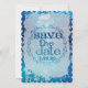 Under havet med vackra vattenfärg blå och diamantvagnsliknande ram med "Spara Datum" utsmyckad typografi gör din speciella dag verkligen stående.