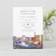 Denna eleganta lyckligt för alltid-fest Las Vegas-skyline akvarell bröllopsinbjudan kan anpassas med din information i chic typografi och speciellt foto på baksidan. Designad av Thisisnotme©