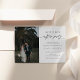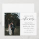 Fira din nya början med stil med denna charmiga bröllopsinbjudan till mottagningen. Designen kombinerar vackert ett hjärtligt foto av det nygifta paret med frasen ”Happily Ever After Party” i elegant skrivstil, som sätter tonen för en glädjefylld och avslappnad fest.