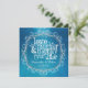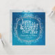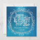 Vacker akvarell akvablå med skärmad överlagring tar upp bakgrundsfärgen du väljer.. Invecklad blomsterprydnad omger inbjudan med kärlek, skratt och lyckligt för evigt.