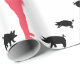 Lyckligt mål, vegetariskt tema som slår in papper - en fet man och rosaängelgris, konsttema för att göra dig att tänka om att inte äta djur.