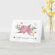 Elegant kort för mors dag med akvarellillustration av en rosa peony med gröna blad.