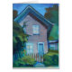 Detta noterar kortet baseras på den original- oljemålningen, "stora blått nå en höjdpunkt," vid New York den fina konstnären Mary Ann Lucas och särdrag ett vänligt hus med ett vitposteringstaket och en total- avkänning av lyckan och kärlek. Det är det väsentliga "lycklighemmet" noterar kortet.