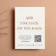 Snyggt light kräm eller privat bröllop-meddelande och mottagning eller inbjudan till firande-parti. På framsidan skrivs "Lyckligtvis Alltid efter Party" i en blandning av enkel typografi och ett elegant-skript med dekortecken, och du kan anpassa ditt meddelande och din inbjudan och lägga till namn i ett namnteckning skript. På motsatt sida anger du URL:en för bröllop-webbplatsen adress för att skapa en QR-kod för gäster som ska söka efter all information och OSA online och lägga till din första namn och bröllop och mottagande data.