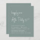 Minimalistisk, budgetvänlig inbjudan till bröllopsmottagning med grönten "Lyckligtvis allt efter Party" i ett modernt, vitt skript i chic och ditt namn i klassiskt serif-typografi. Den här pappra för halvblankt i budgeten liknar den för pappert foto. Det finns också en traditionell version av kortet lagrar (meddelande oss för länken).