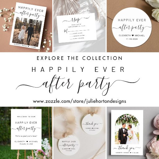 Chic är blöjor för ditt bröllopsmottagande och andra händelser efter bröllop med "Lyckligtvis någonsin efter Party" i en blandning av enkel typografi och ett snyggt-skript med byten, ditt första namn och ditt mottagningsdatum.