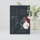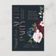 Vet, elegant och romantiskt mottagningskort för bröllop med våra målade vattenfärgade blommor i eleganten. Vackra fet blommigt med djup burgundi, rik marin blått och nykterheter med accenter av lush grönt sage löv och greenery. Blommigtarna är placerade i vackra bukettarrangemang för att skapa denna djärva och elegant blommigt design. "Lyckligtvis allt efter Party" visas i en typografisk elegant faux guld med ro, där bröllopsmottagningsdetaljerna är väl ordnade. Vattenfärgade blommigtar som målats med moodtologi.