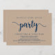 Snyggt, lyckligtvis allt efter party, Bröllop Elopement annonsbrev/inbjudningskort, i modern rysk utformning, Brown Kraft, marinblått teckensnitt. Det här är perfekt för ditt bröllopsmottagande och party efter bröllop firande. Lägg till information i matchande teckensnitt/text. #TeeshaDerrick
