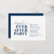 Meddela och er lyckligt allt efter i stil med vår moderna blåtematdesign för marinen (lyckligtvis allt efter party), inbjudet till firande i bröllop-utställningen i. Det är idealiskt för par som har beslutat att fira sin bästa dag. Med sin sofistikerade men lekfulla utformning kommer inbjudan säkert att ange tonen för en händelse som inte kan glömmas bort. Inbjudningskortet har ett modernt och minimalistiskt tema för skriptutformning, vilket gör att du får lite elegans i firande. Designad av TeeshaDerrick