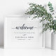 Välkomna gäster till bröllop med vår söta chic poster, tillgängliga i flera storlekar. Designen har rik marin blå typografi på skarp vit med "Välkommen" överst i handskript för elegant och "..till vår lyckliga efterträdare" och din namn och bröllop-dejt under klassiska blockbokstäver.