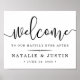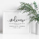 Välkomna gäster till bröllop med vår söta chic poster, tillgängliga i flera storlekar. Utformningen har svart typografi på skarp vit med "Välkommen" överst i handskript för kalligrafi av elegant och "...till vår lyckliga dag efter" och din namn och bröllop dejt under.