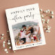 Budgetvänlig och elegant lätt gräddfil eller mindre aviserings- och mottagningsinbjudan till bröllop. Framsidan har bröllopsdagens foto, "Lyckligtvis allt efter Party" i en blandning av enkel typografi och ett söt skript med dekorationer och ditt första namn och bröllop-datum. På motsatt sida kan du anpassa ditt meddelande mer i detalj och lägga till party eller information om mottagningsinbjudan och namn i ett namnteckning skript.