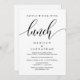 Meddela och er lyckligt allt efter i stil med vår moderna svarta vita temadesign (som tur är efter lunch) bröllop-inbjudan till firande. Det är idealiskt för par som har beslutat att fira sin bästa dag. Med sin sofistikerade men lekfulla utformning kommer inbjudan säkert att ange tonen för en händelse som inte kan glömmas bort. Inbjudningskortet har ett modernt och minimalistiskt tema för skriptutformning, vilket gör att du får lite elegans i firande. Designad av TeeshaDerrick