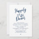 Planerar du en lycklig dag efter middagen och dansade firande vid bröllopsdagen? Inbjudan dina kära gäster med detta "Lyckligtvis allt efter party", i den moderna rittermdesignen (marinblått), med angivande av datum, tid, plats och OSA.