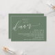 Markera början på din evighet med elegans med hjälp av vår contemporary grönt för rustik , inbjudningskortet bröllop elopement firande, "Lyckligtvis allt efter middagen". Perfekt för par att utvidga sitt glada tillfälle, denna inbjudan är sofistikerad med en antydan om spelaktsamhet, som anger en minnesvärd händelse. Med ett svart och vitt tema utan tidslängd tillför det en liten nyck charm till dina festligheter. Den här inbjudan är skapad av TeeshaDerrick och lovar att på ett klokt sätt fånga din kärlek-historia.