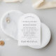 Elegant, bågformad elopement eller privat bröllop meddelande- och mottagningsinbjudan med ditt foto och "Lyckligtvis allt efter Party" i klassisk serif-typografi. Anpassa din aviserings- och mottagningsinbjudan från giftermål och lägg till namn i ett namnteckning skript.