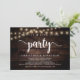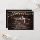 Snyggt, lyckligtvis allt efter party, Bröllop Elopement annonsbrev/inbjudningskort, i Modern Rustic Brown Mörk wood design, med stuvsträng ljus. Det här är perfekt för ditt bröllopsmottagande och party efter bröllop firande. Lägg till information i matchande teckensnitt/text. #TeeshaDerrick
