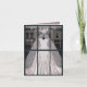 Perfekt för vilken brud som helst med giftig charm och vintage stil. En vacker, knappt rosa, sjöjungfru bröllop har dykt upp i ett butiksfönster för chic, insida på kortet bilder i butiken insida, där gryningen och slöja har avlägsnats från klädformen och emballerats i stora vintagar med rosa bows. Underbar för brid-, förlovning- eller bröllop-relaterade grattisar.