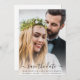 Modern och elegant spara datum meddelande för din post-elopement eller lilla bröllopsmottagning med "spara datumet för vår lyckliga dag efter party" i en blandning av enkel typografi och ett snyggt-skript med dekorationer som täcker ditt foto. Lägg till namn, datum och plats. På motsatt sida kan du ge mer information.