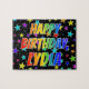 Denna spännande, roligt, födelsetidsinställda pussel ger ett meddelande "GRATTIS PÅ FÖDELSEDAGEN, LYDIA" med tecknen som har ett färgstarkt regnbågsspektrum som inspirerar gradienten mönster, förutom en sjudande stjärna, mönster. Ett färglöst pussel som det här kan användas för att skicka födelsedagstävlingar till någon som heter Lydia. [~Z0000468]