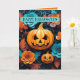 Önska glad Halloween med detta jack-o-lanternmönster och blommor. Inuti finns en yta där du kan lägga till ditt meddelande.