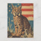 Märk lynxens stora skönhet och Amerikas anda med detta vykort vintage-stil med en lynx som utformats av den amerikanska flagga. Denna slående utformning kombinerar vildens elegans hos en av naturens mest undfallande rovdjur med patriotisk symbolik. Perfekt för samlare, djurentusiaster, eller som en unik keepist, är detta vykort ett uttryck för vildmarkens och det nationella pridets omanipulerade charm.