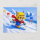 A playful soft 3D cartoon lynx racing through a giant slalom course in a snowy mountain landscape. The scene captures dynamic winter‑sports action with a friendly Nordic wildlife character in a cosy, stylised look. Ideal for children’s themes, educational projects, winter designs, and creative storytelling.