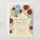 Lyons Blue Peony & Röd ros Bröllop Firande Inbjudningar