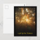 Morgonens solljus bryter genom lönnarnas mörker. Ljusströmmar kommer genom de bladrika grenarna i alla riktningar. 'Lys upp mörkret' frasen i gula bokstäver längst ner. Skicka en påminnelse till dina nära och kära.