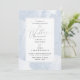 PixDezines Shine Collection. Akvarell av saliga blekblå penseldrag med en antydan till metalliskt silver. Gör-det-själv-bakgrund som pryder denna bröllopsinbjudan. Vår dynamiska design låter dig redigera alla element.